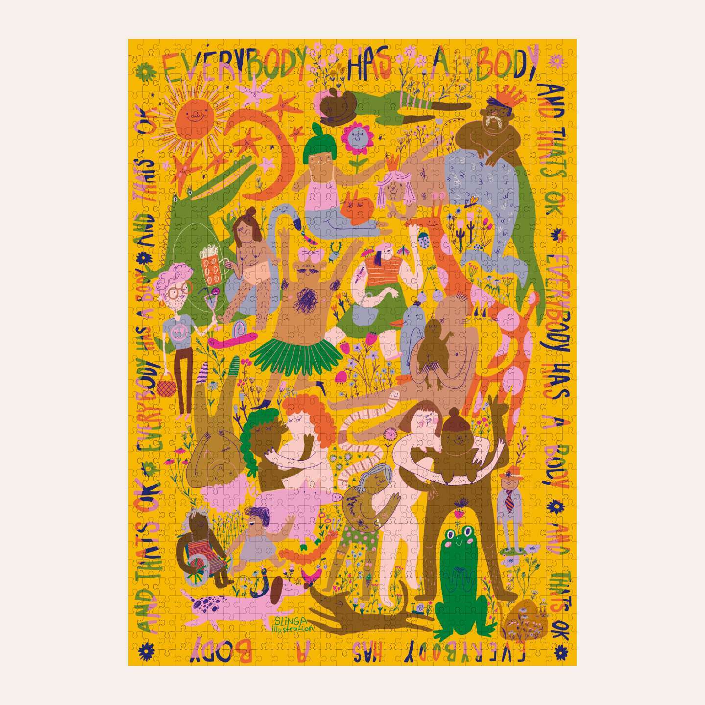Das Everybody Has A Body–Puzzle* von der Illustratorin Slinga alias Lea Hillerzeder ist ein 1000-Teile-Puzzle, das Vielfalt und Körperpositivität auf kreative Weise fördert. Bunt illustriert, zeigt es Menschen mit unterschiedlichsten Körperformen, Geschlechtern und Hautfarben, die Nähe und Freude teilen. Das Puzzle und die Verpackung sind aus recyceltes Papier und in Deutschland produziert. Ein tolles Geschenk, das spielerisch Empathie und Akzeptanz vermittelt. Es ist im Familiar Faces Verlag erschienen, von dem wir euch noch weitere tolle Puzzle Motive vorstellen wollen. Zum Beispiel auch das In this together, das ihr auch in der Kategorie Inklusion & Diversität (coming soon) findet oder das Fight today for a better tomorrow in der Kategorie Natur und Klima (coming soon).